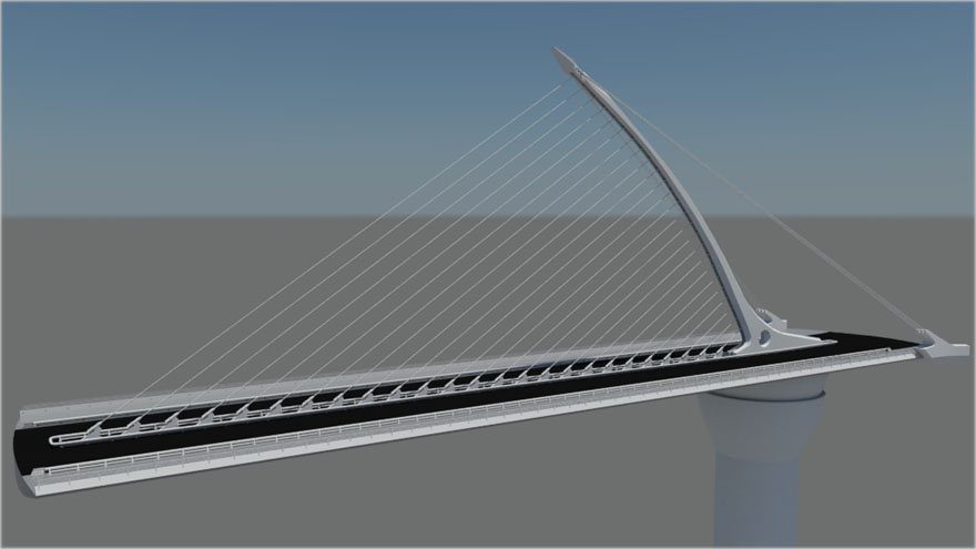 The shape of the spar and its cables is meant to evoke an image of a harp lying on its edge. The harp is the national symbol for Ireland from as early as the thirteenth century.