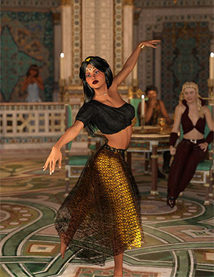 The one of the main characters is a dancer and the author wanted the scene where she dancing for a king with an audience in the background as the cover.