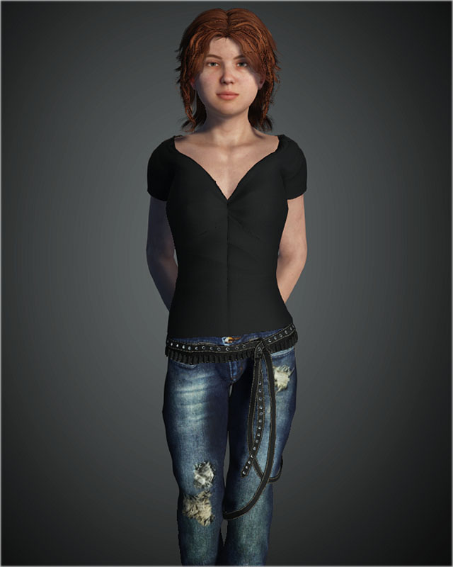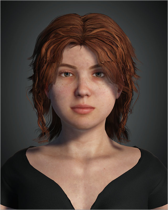 The hair and clothing are imports from Daz Studio. The hair kind of wigged out on the import, it will take a bit of time to get that fixed.